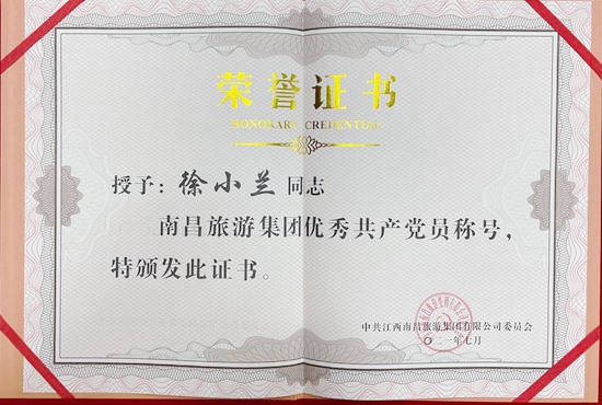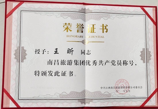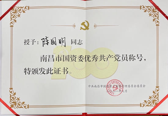 在隆重紀念中國共產黨成立100周年之際,南昌市國資委和南昌旅游集團于近日對一批來自各條工作戰線上的優秀黨員和優秀黨務工作者及先進基層黨組織進行了表彰,獎勵他(她)們在各自的工作崗位上履職盡責創先進、立足崗位爭優秀,在推動企業高質量發展中充分發揮戰斗堡壘和先鋒模范作用。其中,公司陳國明同志榮市國資委“優秀共產黨員”稱號,公司黨委被評為南旅集團“先進基層黨組織”,黨員職工胡穎明、徐小蘭、王昕、王貞同南旅集團“優秀共產黨員”稱號。