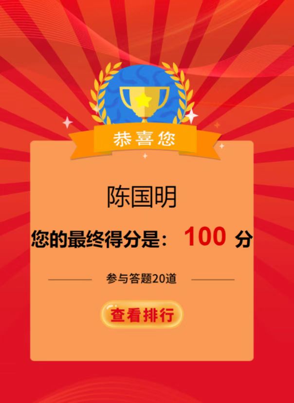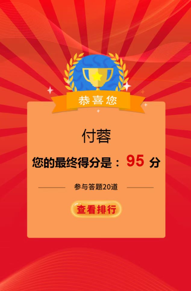 該競是以“傳承紅色基因 守牢紀法底線”為主題,通過線上學習,線上答題的形式,以考促學,以考驗效,營造了學習“”的濃厚氛圍,重點教育黨員干部深刻認識“兩個確立”的決定性意義,增強“四個意識”、堅定“四個自信”、做到“兩個維護”。同時,把答題活動作為加強黨員干部紀法教育的重要載體進行落實,激發(fā)黨員干部學習紀法知識的積極性、主動性,牢固樹立紀法意識,自覺嚴守紀律規(guī)矩、不逾紀法底線,廉潔從政從業(yè)、規(guī)范行權用權。